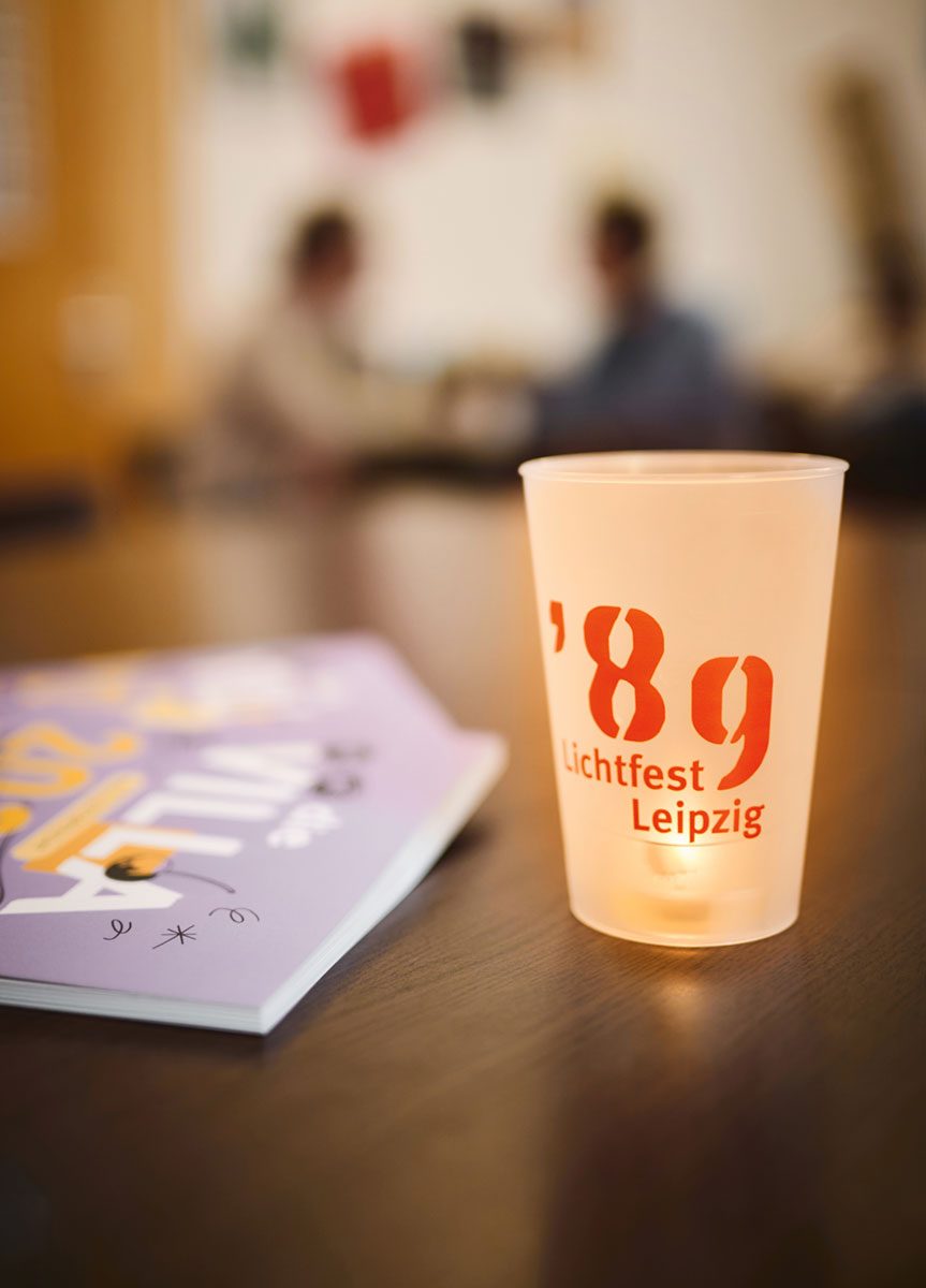 Mit dem Kauf einer Kerze kann die gemeinwohlorientierte Arbeit der VILLA ganz einfach unterstützt werden: Auf das traditionelle Kerzenpodest in Form einer 89 können im Laufe des Abends wieder Teelichter aufgestellt und so gemeinsam ein stilles Zeichen der Erinnerung an die Friedliche Revolution gesetzt werden. Die Kerzen sind kostenfrei oder gegen eine freiwillige Spende an allen Kerzen- und Infoständen in der City erhältlich.